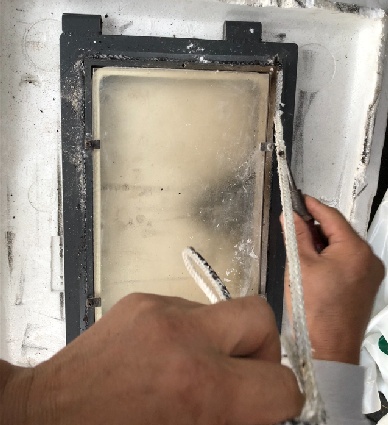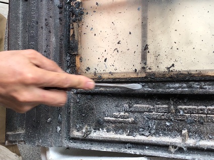 ガスケットが取れたら耐火セメントを取り外し