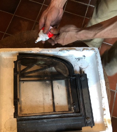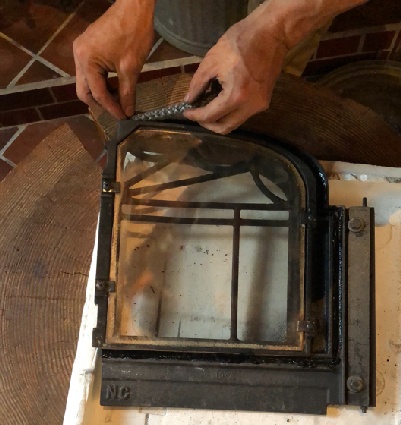 新しい耐火セメントを塗りグラスロープの取り付けて